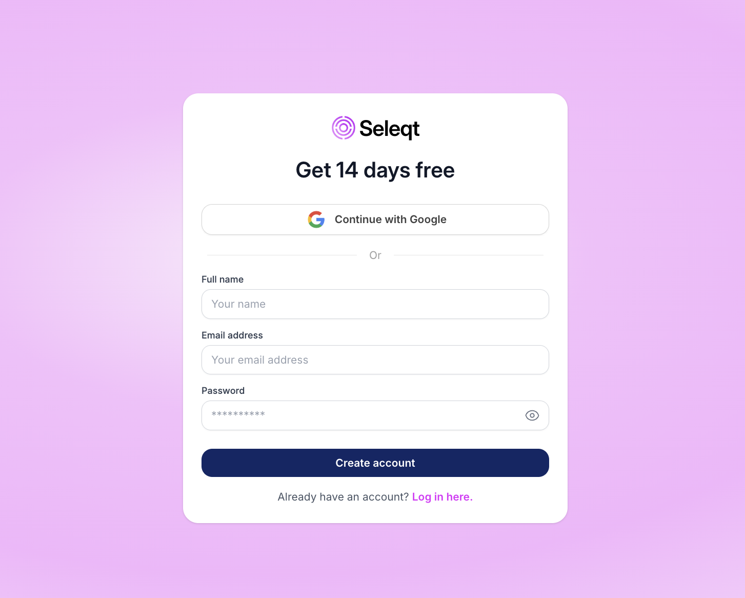 You will be redirected to a new page where you’ll have to fill in the verification code that was sent to the email address that you have entered. Fill in the verification code and congratulations you can now get started with Seleqt