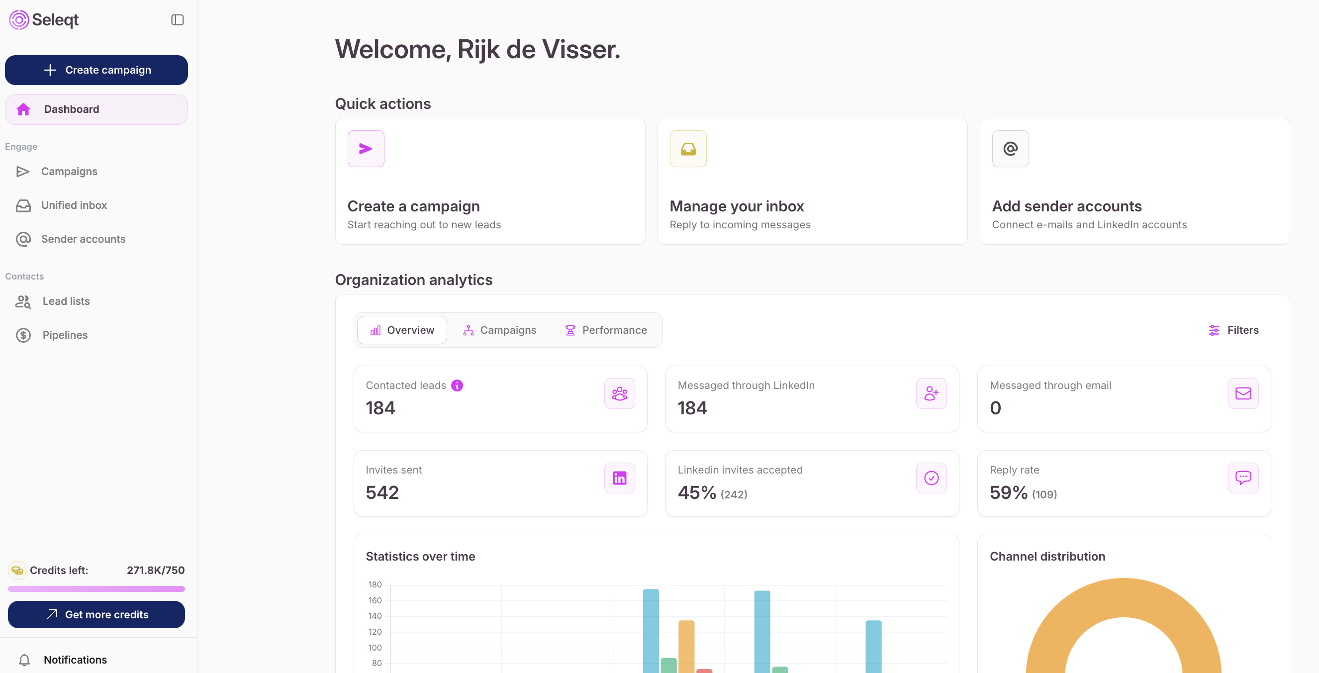 Organization Analytics: This gives you an overview of the campaign and sender account performance