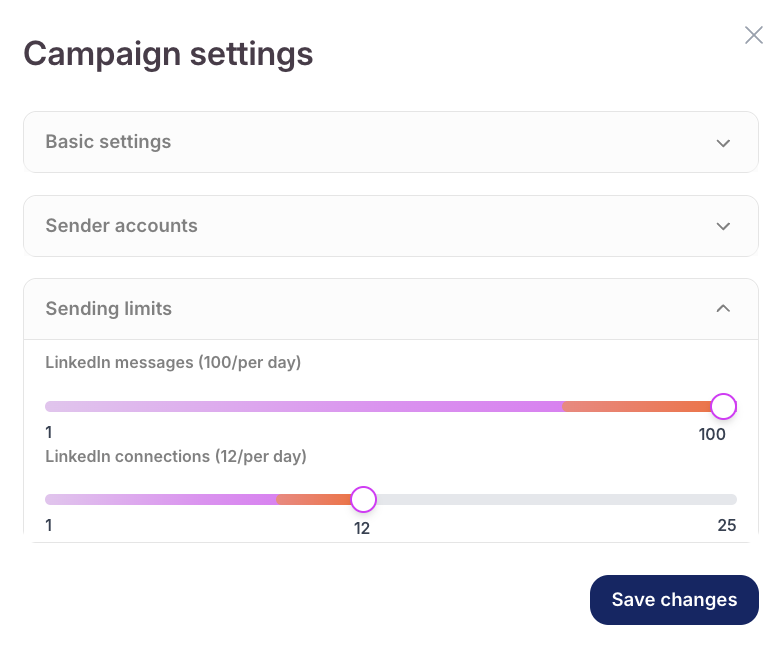 After setting the limits, simply restart both campaigns. They will now run in parallel with the correct daily invite distribution.